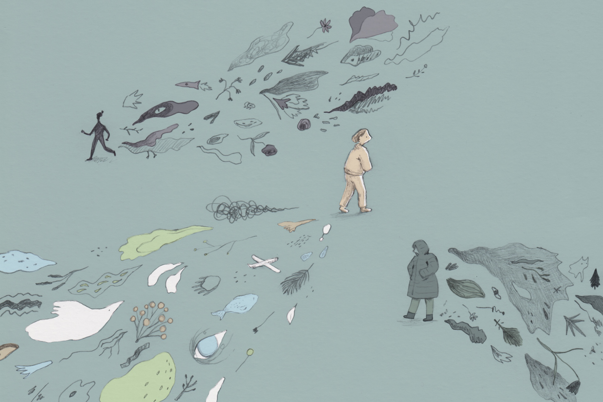 Siden 2017 har jeg illustrert for Steg, medlemsmagasinet til Norges Kristelige Folkehøgskolelag. Jeg har vært så heldig å få bruke dette som en arena for å prøve ut ulike teknikker og stilarter, og øve meg på redaksjonell illustrasjon. Steg gis ut fire ganger i året, med ulikt tema hver gang. Når jeg illustrerer forside og bakside (som jeg har gjort fast siden 2019) får jeg vite tema, enkelte ganger vinklingen eller noen ideer redaktøren har, og skisser meg frem til en idé som fungerer basert på det.